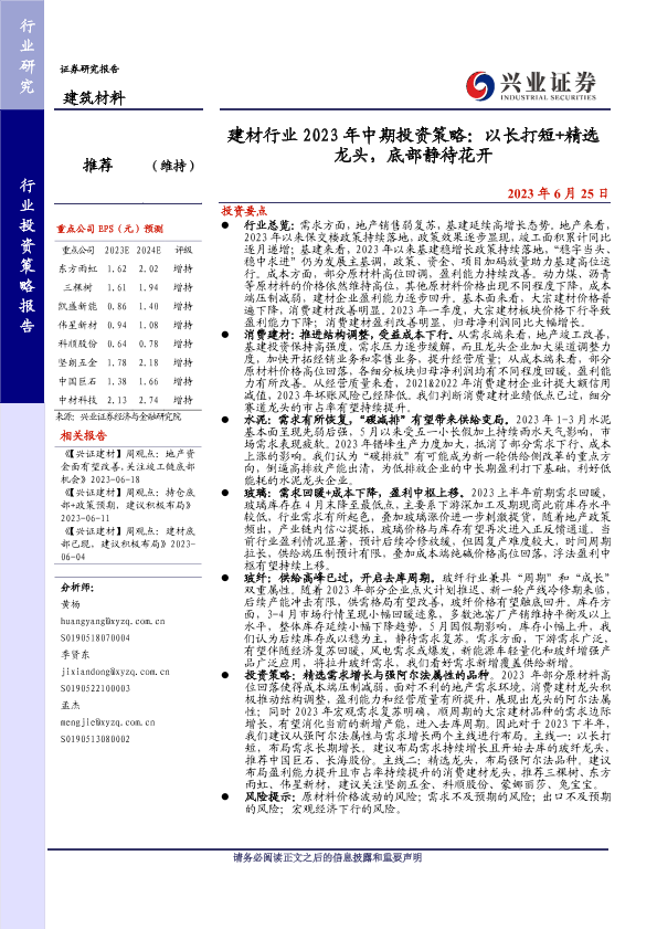 【兴业证券】【20230625】建材行业2023年中期投资策略:以长打短+精选龙头,底部静待花开-36页