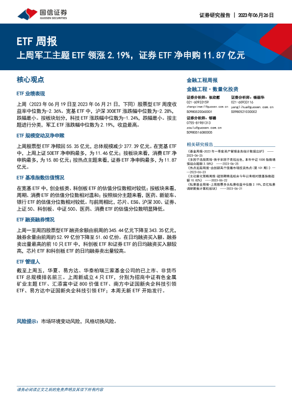 【国信证券】【20230626】ETF周报:上周军工主题ETF领涨2.19%,证券ETF净申购11.87亿元-22页