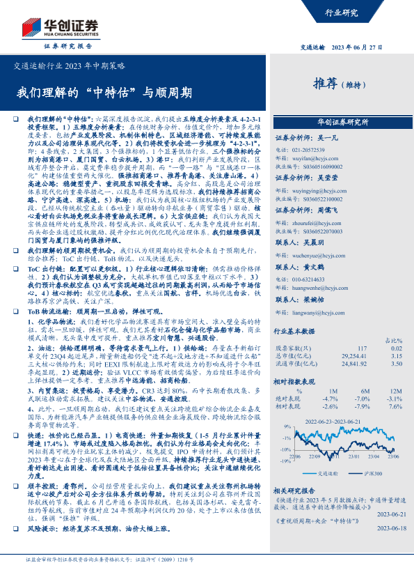 【华创证券】【20230627】交通运输行业2023年中期策略:我们理解的“中特估”与顺周期-44页