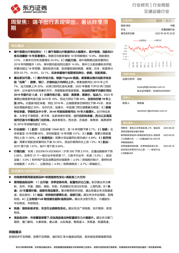 【东方证券】【20230625】交通运输行业周聚焦:端午出行表现突出,暑运旺季可期-22页