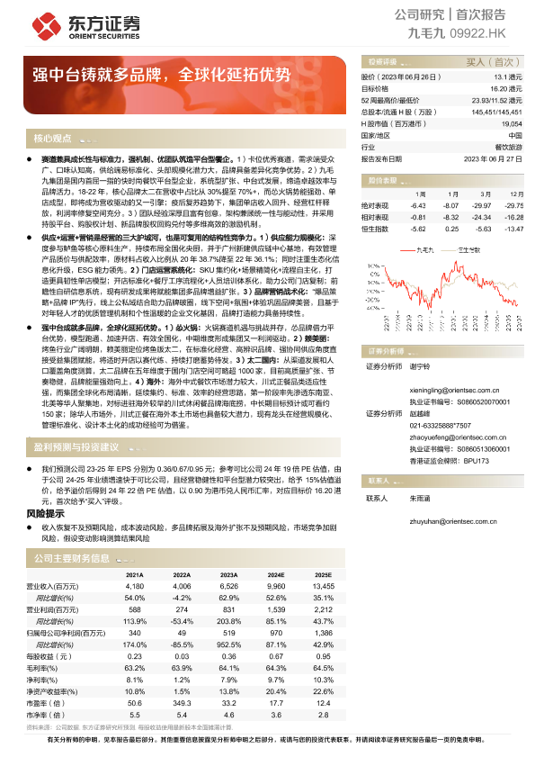 【东方证券】【20230627】九毛九(09922)强中台铸就多品牌,全球化延拓优势-45页