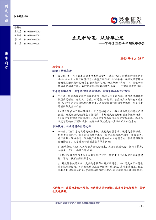 【兴业证券】【20230625】立足新阶段,从赔率出发——可转债 2023年中期策略报告-47页