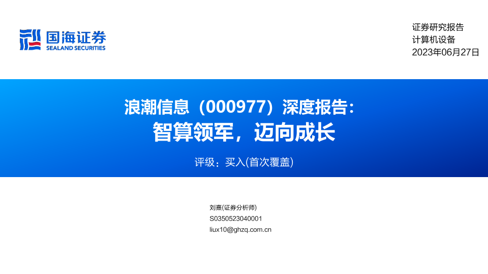 国海证券 成长分析 智算领军 计算机设备 浪潮信息