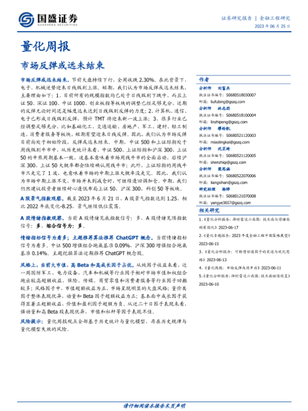 【国盛证券】【20230625】量化周报:市场反弹或远未结束-22页