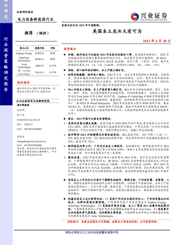 【兴业证券】【20230630】美国光伏行业2023年中期策略:美国本土龙头大有可为-25页