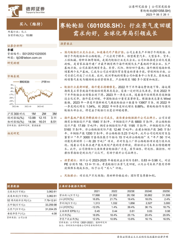 【德邦证券】【20230626】赛轮轮胎(601058)行业景气度回暖需求向好,全球化布局引领成长-18页