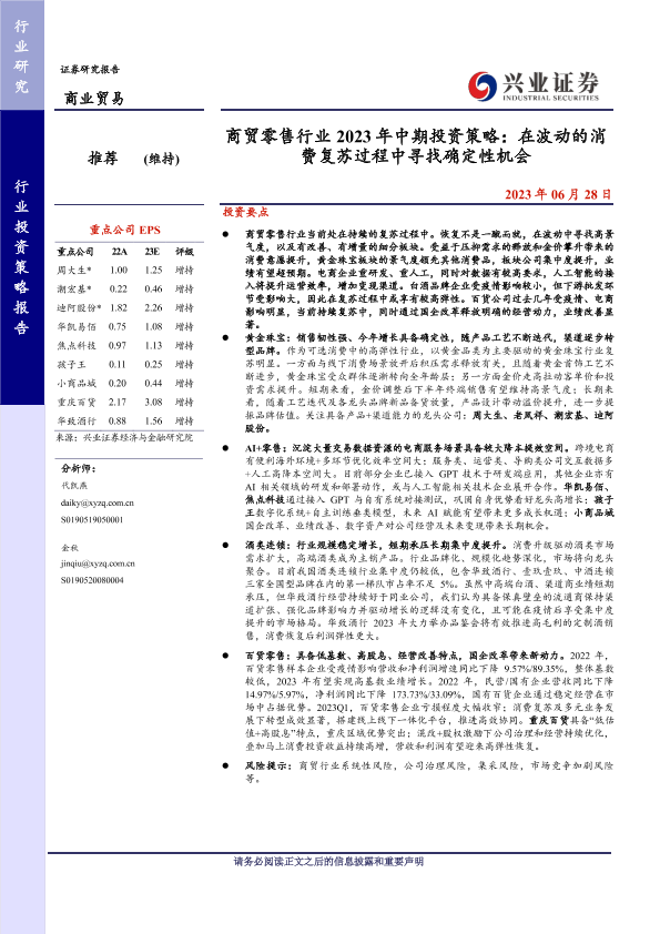 【兴业证券】【20230628】商贸零售行业2023年中期投资策略:在波动的消费复苏过程中寻找确定性机会-62页