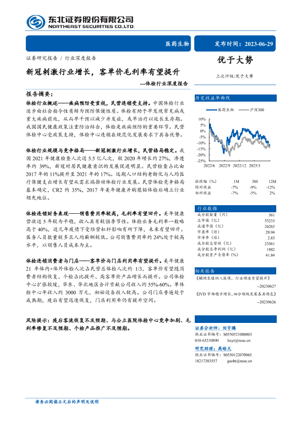 【东北证券】【20230629】体检行业深度报告:新冠刺激行业增长,客单价毛利率有望提升-30页