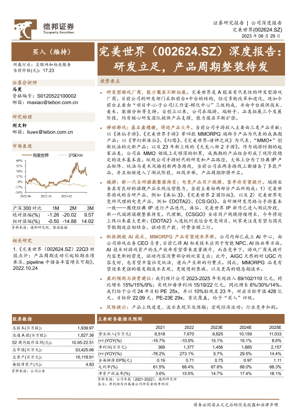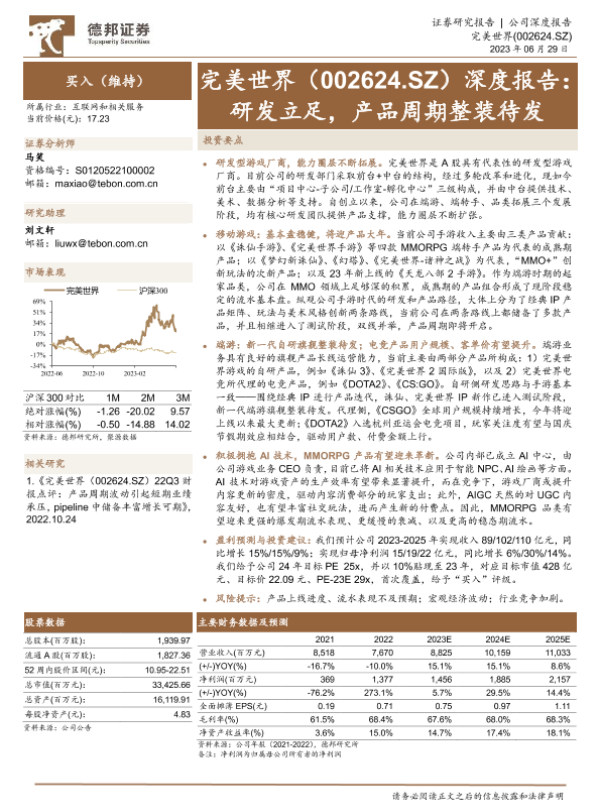 【德邦证券】【20230629】完美世界深度报告(002624):研发立足,产品周期整装待发-22页
