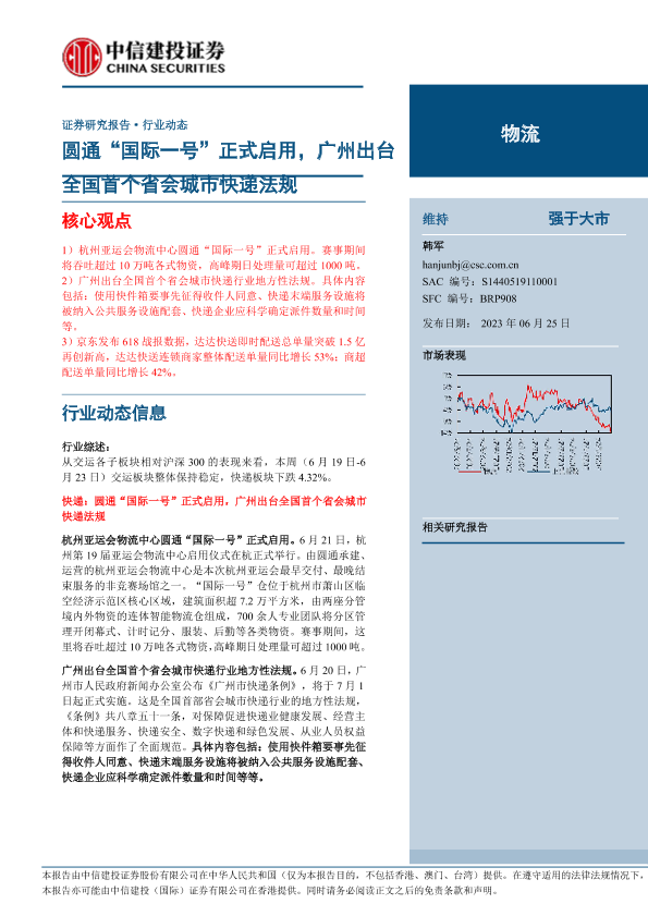 【中信建投证券】【20230625】物流行业:圆通“国际一号”正式启用,广州出台全国首个省会城市快递法规-24页