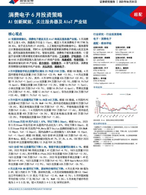 【国信证券】【20230625】消费电子6月投资策略:AI创新赋能,关注服务器及AIoT产业链-25页