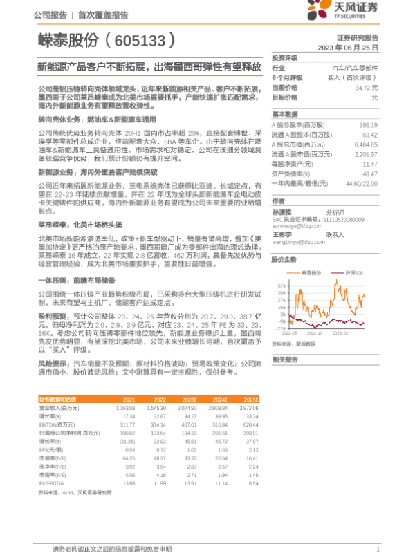 【天风证券】【20230625】新能源产品客户不断拓展,出海墨西哥弹性有望释放-17页