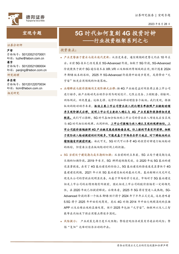 【德邦证券】【20230628】行业投资框架系列之七:5G时代如何复刻4G投资时钟-15页