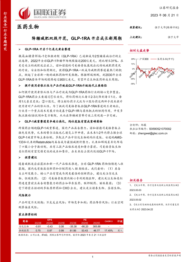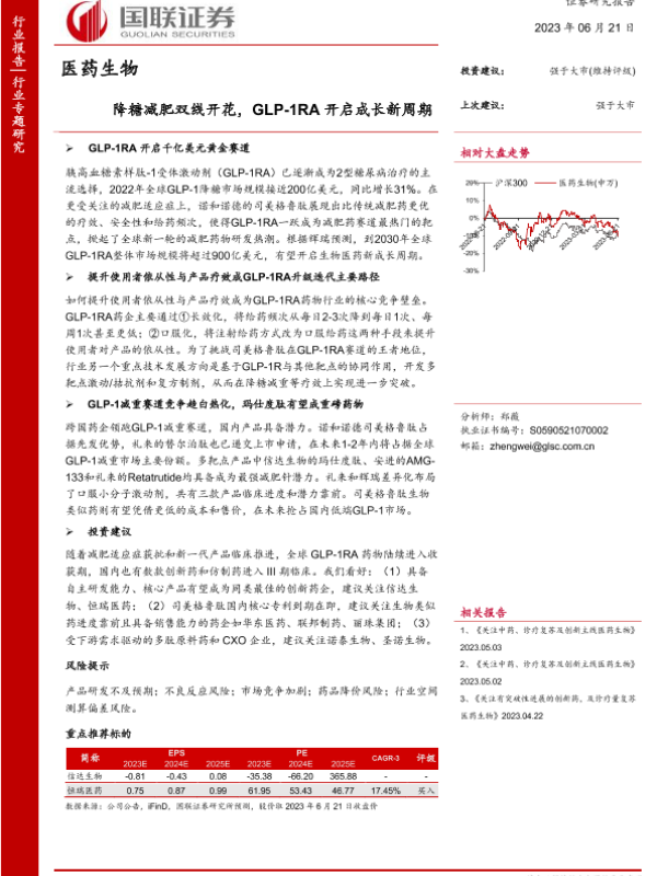 【国联证券】【20230621】医药生物行业:降糖减肥双线开花,GLP-1RA开启成长新周期-26页