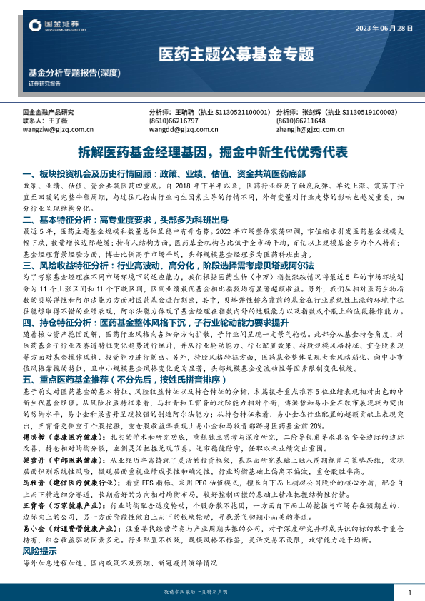 【国金证券】【20230628】医药主题公募基金专题:拆解医药基金经理基因,掘金中新生代优秀代表-31页