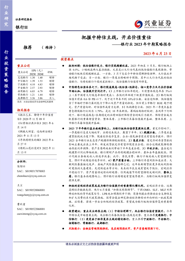 【兴业证券】【20230623】把握中特估主线,开启价值重估——银行业 2023年中期策略报告-48页