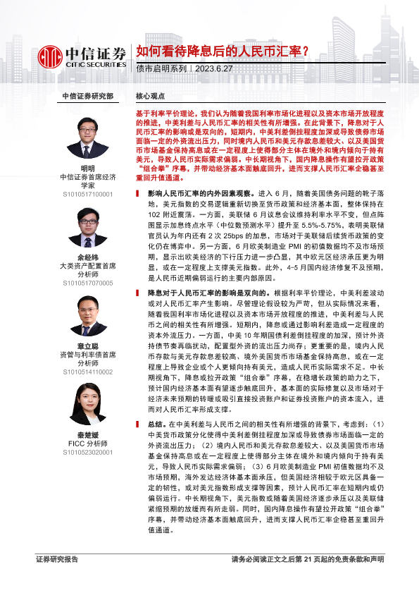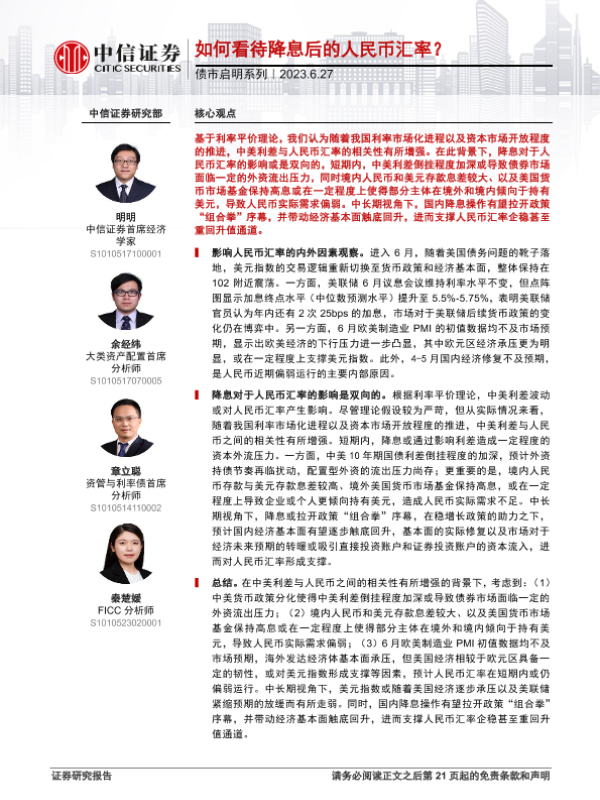 【中信证券】【20230627】债市启明系列:如何看待降息后的人民币汇率?-22页