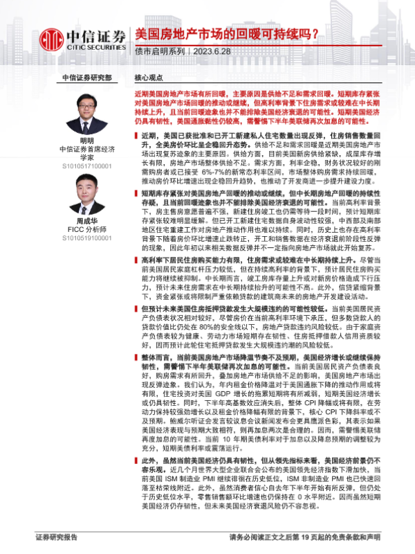 【中信证券】【20230628】美国房地产市场的回暖可持续吗?-20页