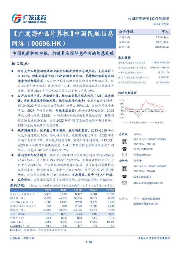【广发证券】【20230626】中国民航信息网络(00696.HK)中国民航神经中枢,打造具有国际竞争力的智慧民航-35页