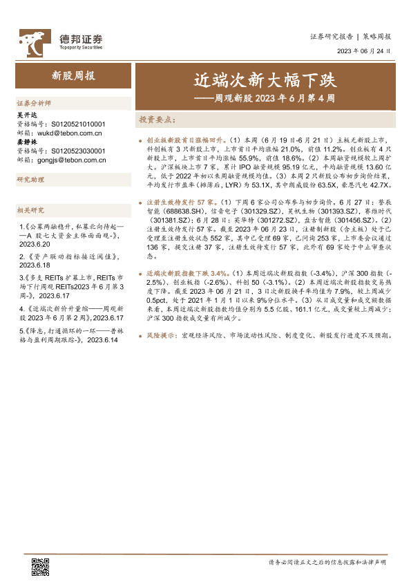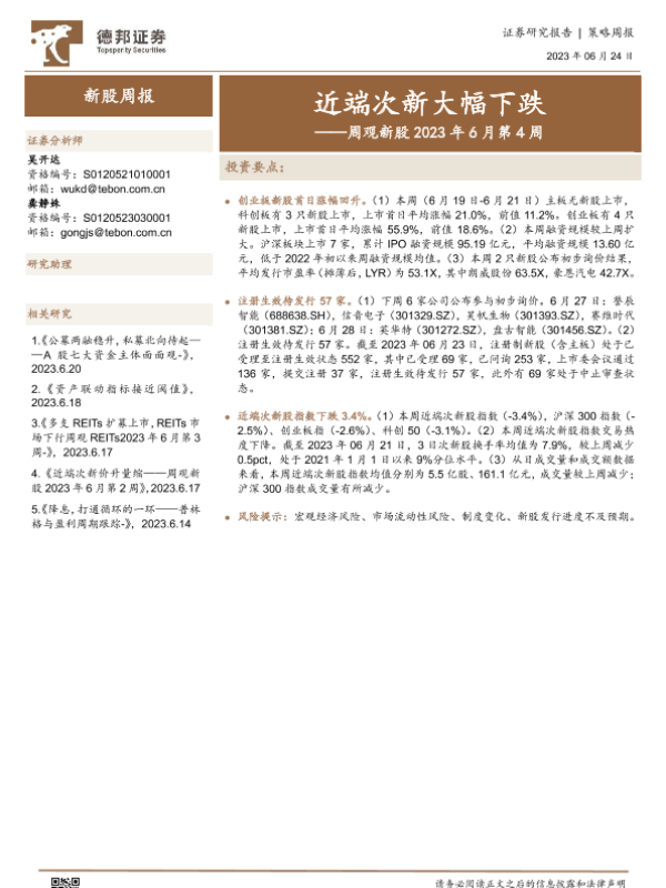 【德邦证券】【20230624】周观新股2023年6月第4周:近端次新大幅下跌-21页
