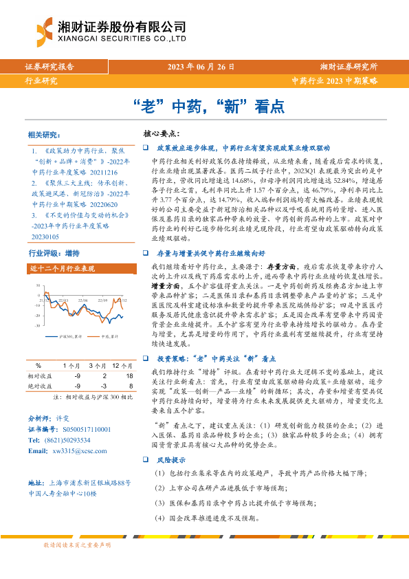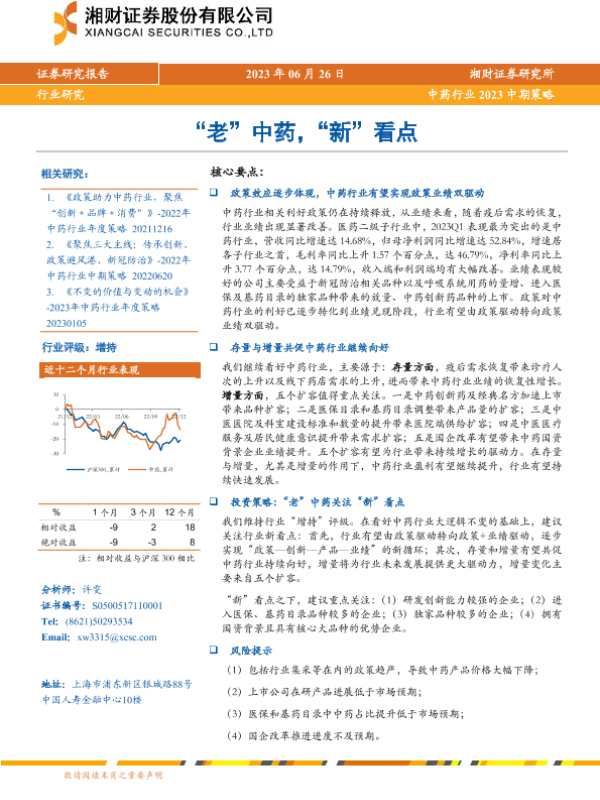 【湘财证券】【20230626】中药行业2023中期策略:“老”中药,“新”看点-30页