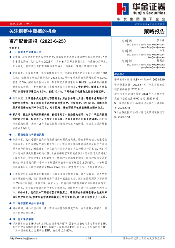 【华金证券】【20230625】资产配置周报:关注调整中蕴藏的机会-18页