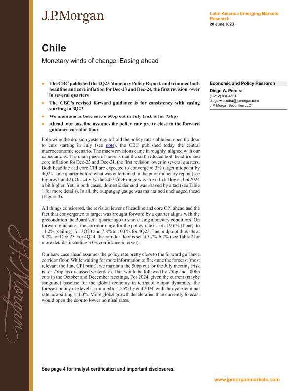 【J.P. Morgan】【20230620】JPMorgan Econ FI-Chile Monetary winds of change Easing ahead-8页