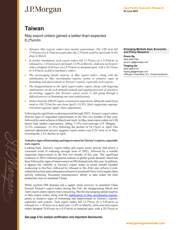 【J.P. Morgan】【20230620】organ Econ FI-Taiwan May export orders gained a better-than-expected 6.2%-10页