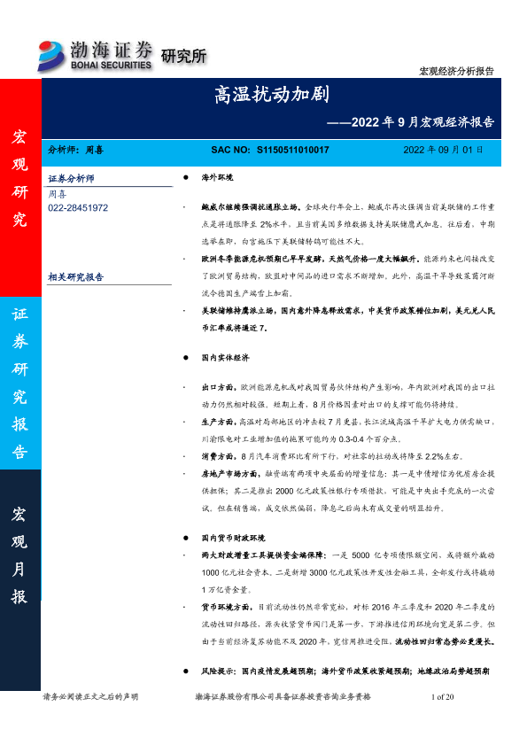 【渤海证券】【20220901】2022年9月宏观经济报告:高温扰动加剧-20页
