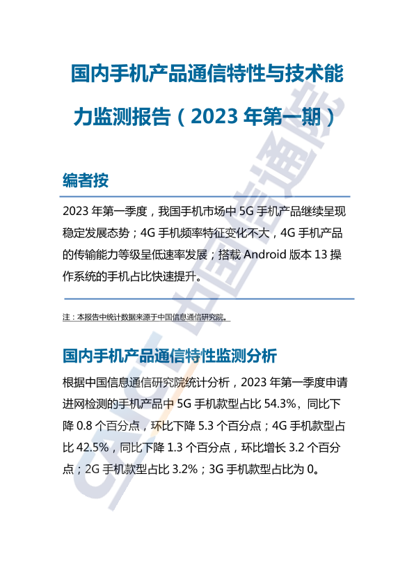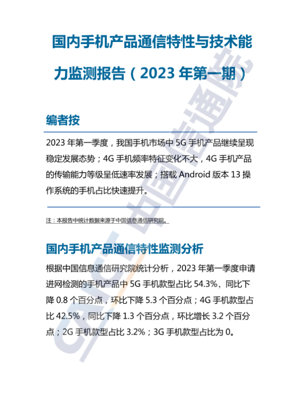 【中国信息通信研究院】【20230101】国内手机产品通信特性与技术能力监测报告(2023年第一期)-7页