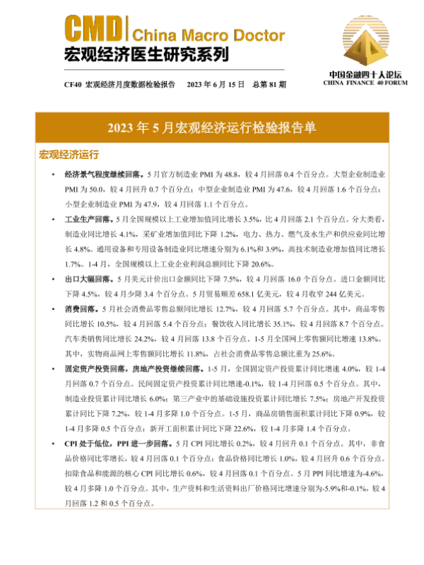 【金融四十人论坛】【20230615】2023年5月宏观经济运行检验报告单-6页