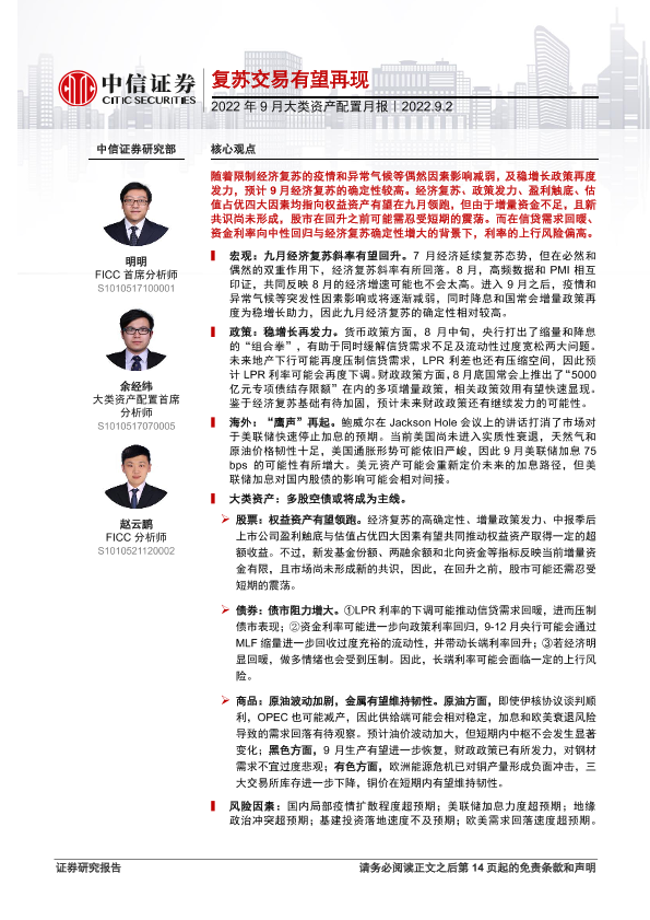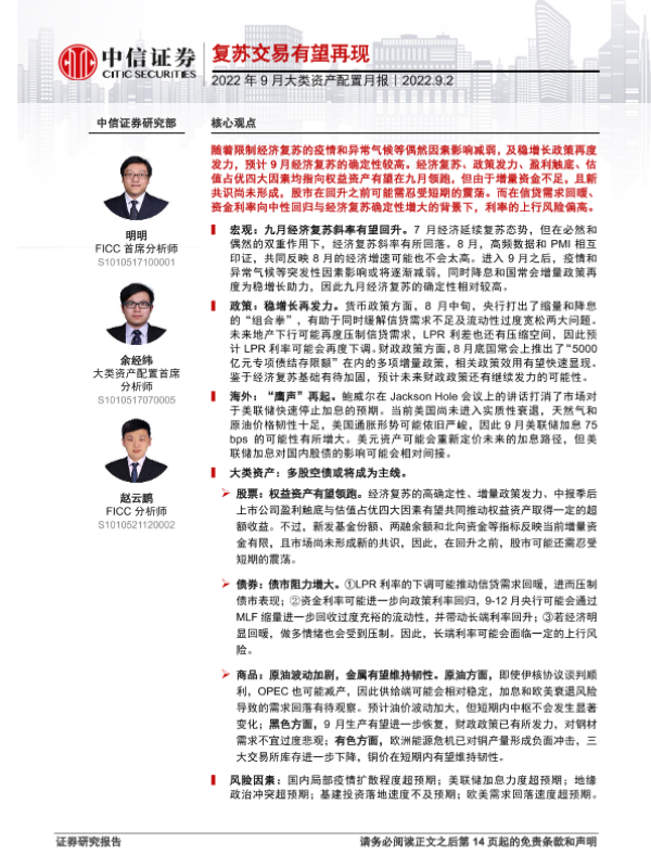 【中信证券】【20220902】2022年9月大类资产配置月报:复苏交易有望再现-15页
