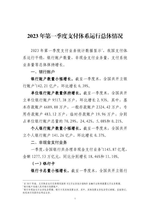 【央行】【20230101】2023年第一季度支付体系运行总体情况-7页