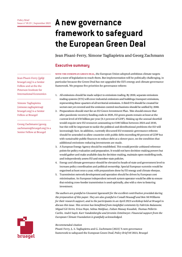 【布鲁盖尔研究所】【202309】维护欧洲绿色协议的新治理框架-20页