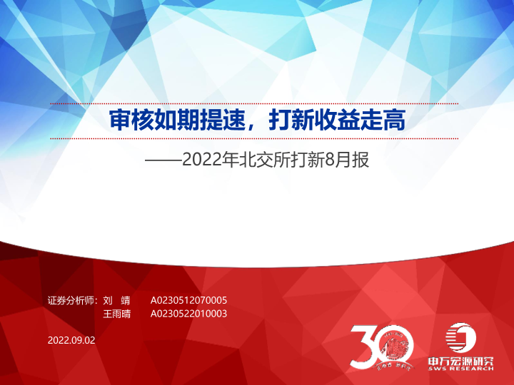 【申万宏源】【20220902】2022年北交所打新8月报:审核如期提速,打新收益走高-23页