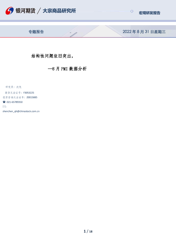 【银河期货】【20220831】8月PMI数据分析:结构性问题依旧突出-18页