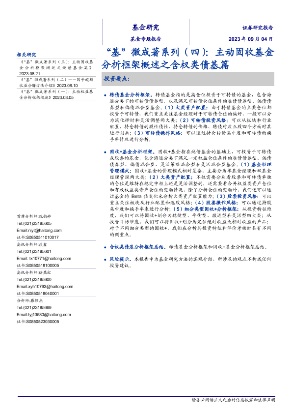 【海通证券】【20230904】“基”微成著系列(四):主动固收基金分析框架概述之含权类债基篇-15页