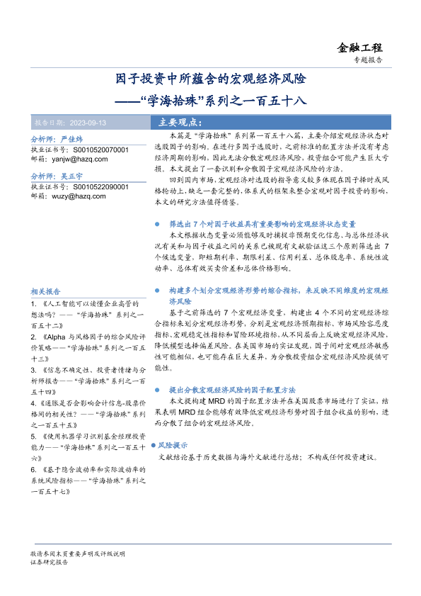 【华安证券】【20230913】因子投资中所蕴含的宏观经济风险-21页