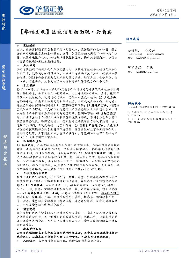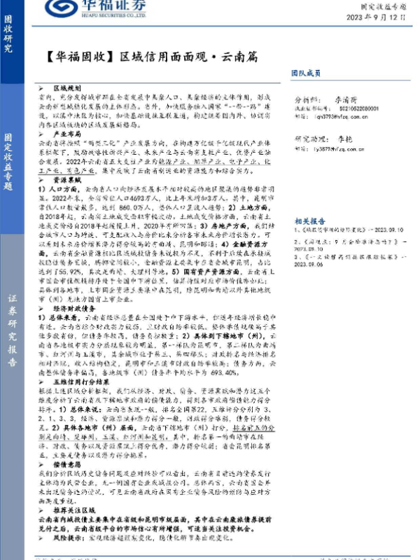 【华福证券】【20230912】【华福固收】区域信用面面观·云南篇-26页
