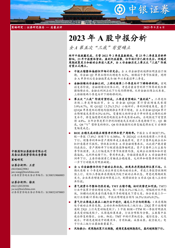 【中银证券】【20230906】2023年A股中报分析:全A第五次“三底”有望确立-19页