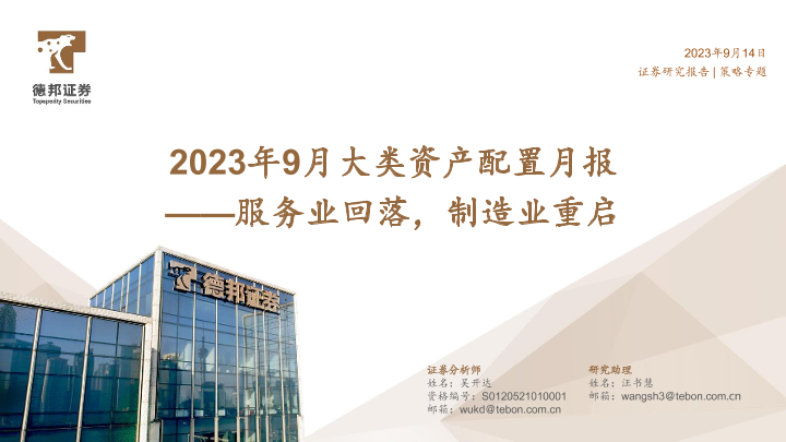 【德邦证券】【20230914】2023年9月大类资产配置月报:服务业回落,制造业重启-35页