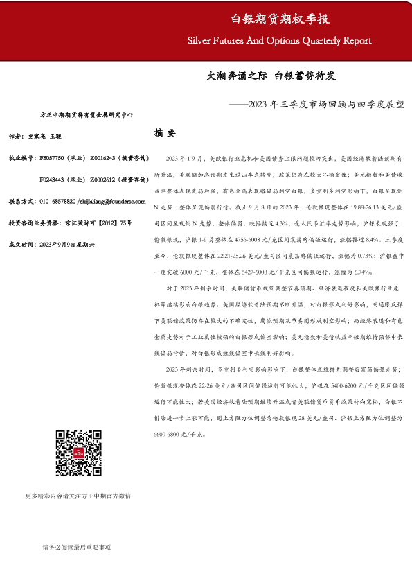 【方正中期期货】【20230909】2023年三季度市场回顾与四季度展望:大潮奔涌之际,白银蓄势待发-53页