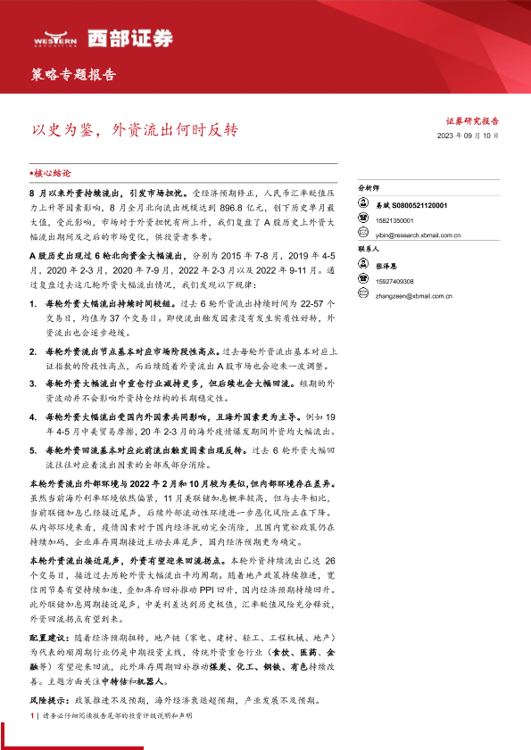 【西部证券】【20230910】策略专题报告:以史为鉴,外资流出何时反转-21页