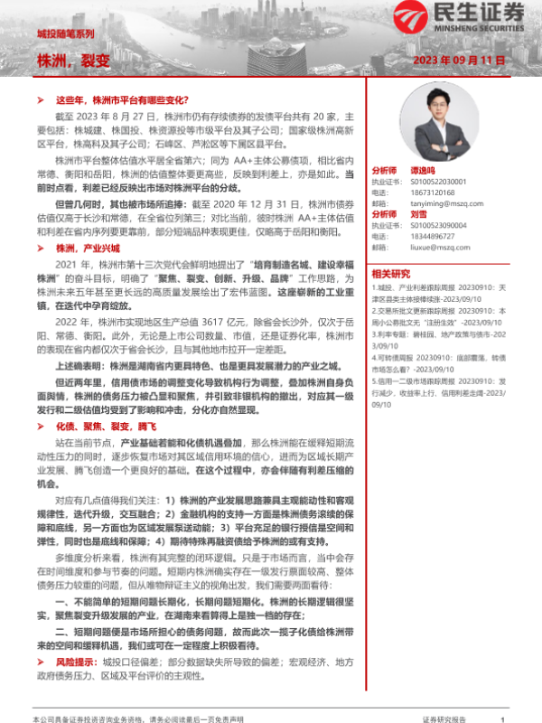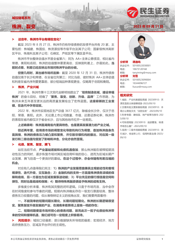 【民生证券】【20230911】城投随笔系列:株洲,裂变-22页