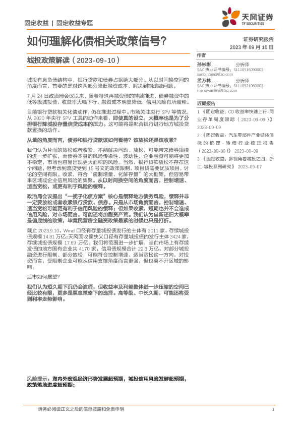 【天风证券】【20230910】城投政策解读:如何理解化债相关政策信号?-25页