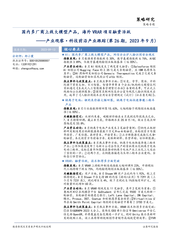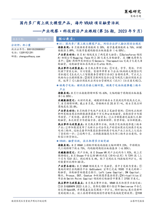 【华安证券】【20230913】产业观察·科技前沿产业跟踪(第26期,2023年9月):国内多厂商上线大模型产品,海外VRAR项目融资活跃-31页