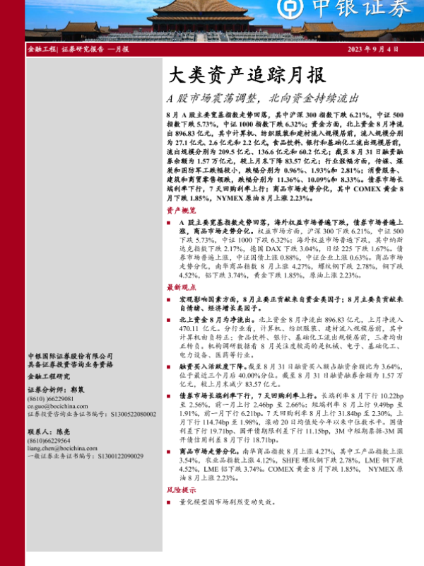 【中银证券】【20230904】大类资产追踪月报:A股市场震荡调整,北向资金持续流出-16页