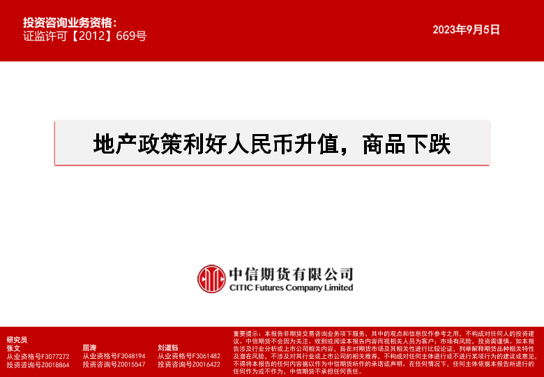 【中信期货】【20230905】地产政策利好人民币升值,商品下跌-15页