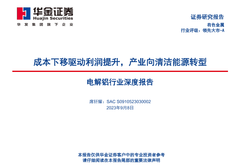 【华金证券】【20230908】电解铝行业深度报告:成本下移驱动利润提升,产业向清洁能源转型-61页