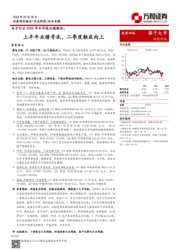 【万和证券】【20230908】电子行业2023年半年报业绩综述:上半年业绩寻底,二季度触底向上-24页